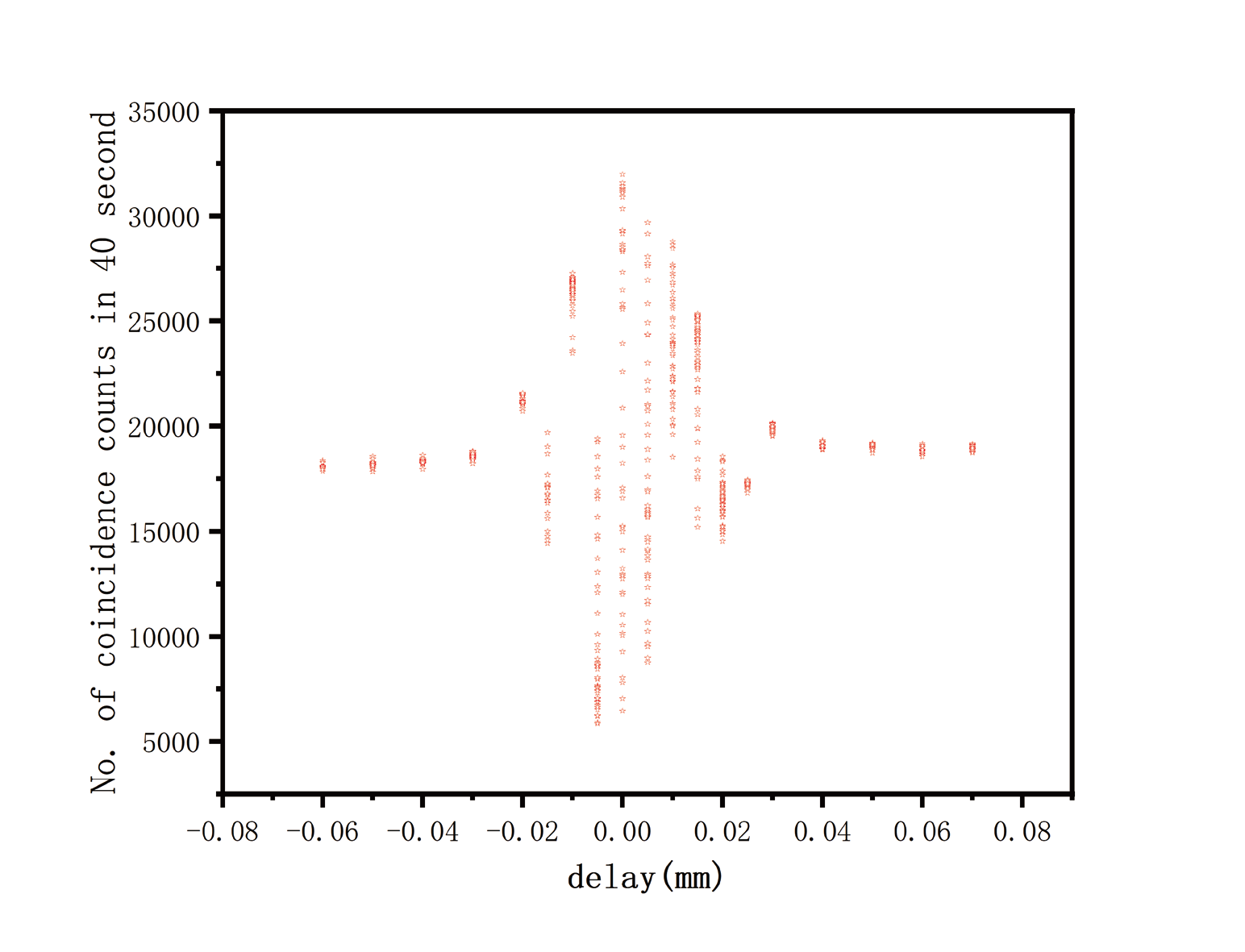 通过符合计数技术,累积观测到清晰的干涉条纹;