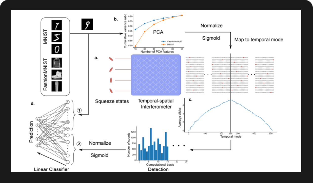 利用8176模式的高斯玻色取样(GBS)在MNIST和Fashion-MNIST数据集上分别实现95.86%和85.95%的测试准确率,超过经典SVC线性核方法。
