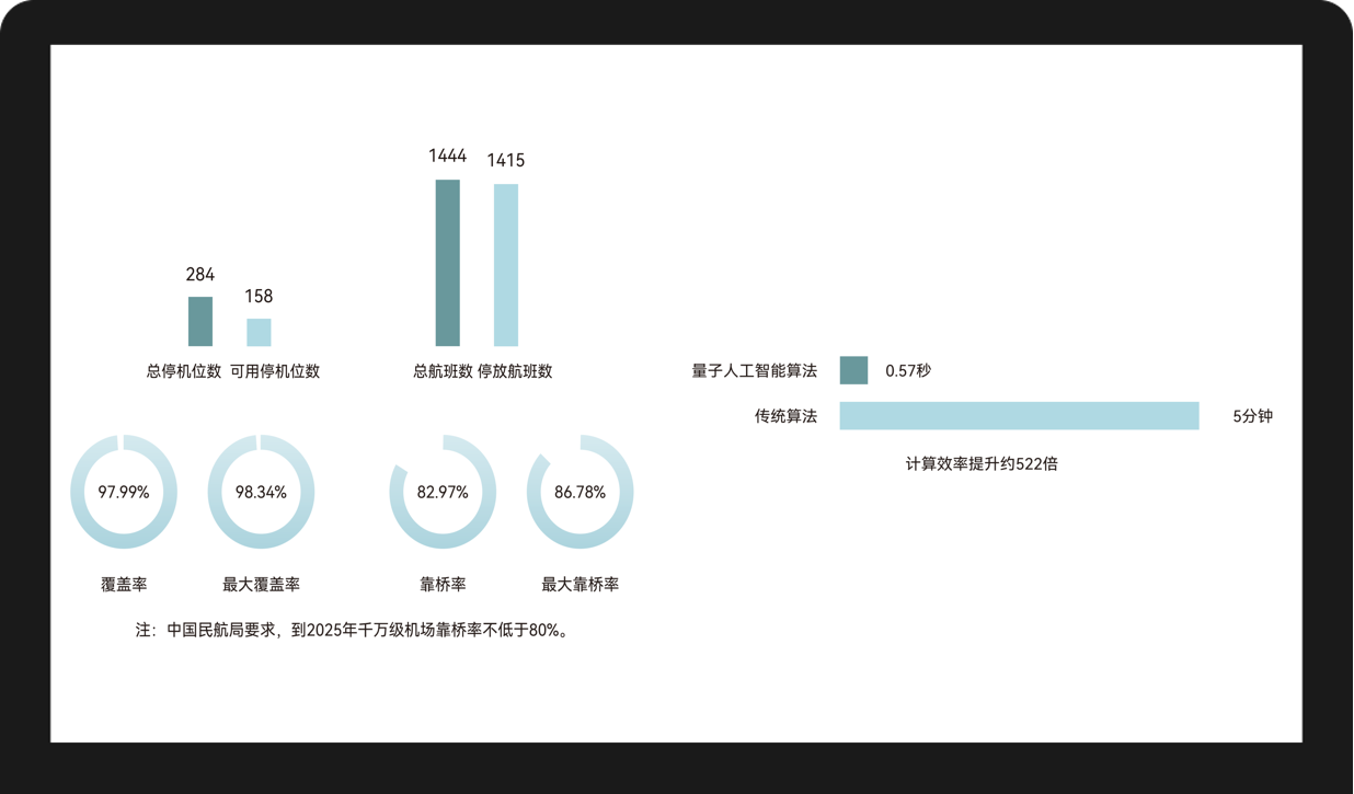 国内吞吐量前十的大型机场,每日航班密集,停机位资源紧张。通过量子-经典混合算法,大幅减少航班冲突,提升桥机位利用率,计算时间缩短至秒级。